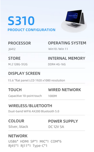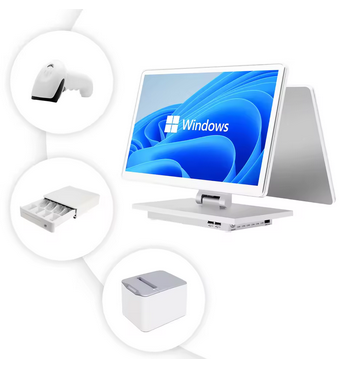 15.6″ TPV All-In-One POS Hardware with Dual Screen Offline Capabilities Screen Holder for Efficient Cash Register Operations