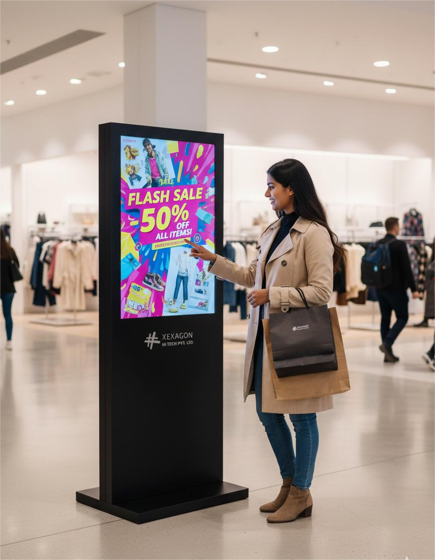 The 43-inch Video Photo Player Indoor Floor-Standing Horizontal Digital Signage is a sleek, modern display solution for advertising, promotions, and information sharing. With vibrant visuals, durable design, and user-friendly operation, it enhances customer engagement in malls, showrooms, hotels, and corporate spaces, delivering impactful content with style and reliability.