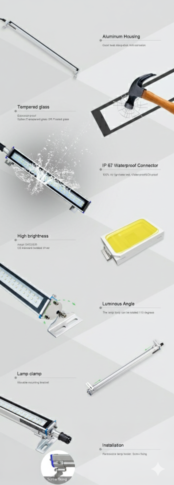 - IP67 rating, resistant to high pressurewash, coolants and detergents.