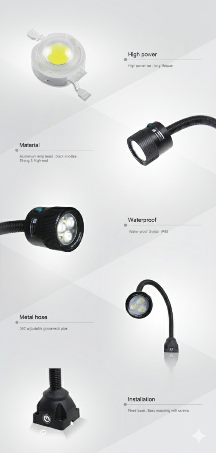IP65 24/220V Flexible LED Gooseneck Work Light