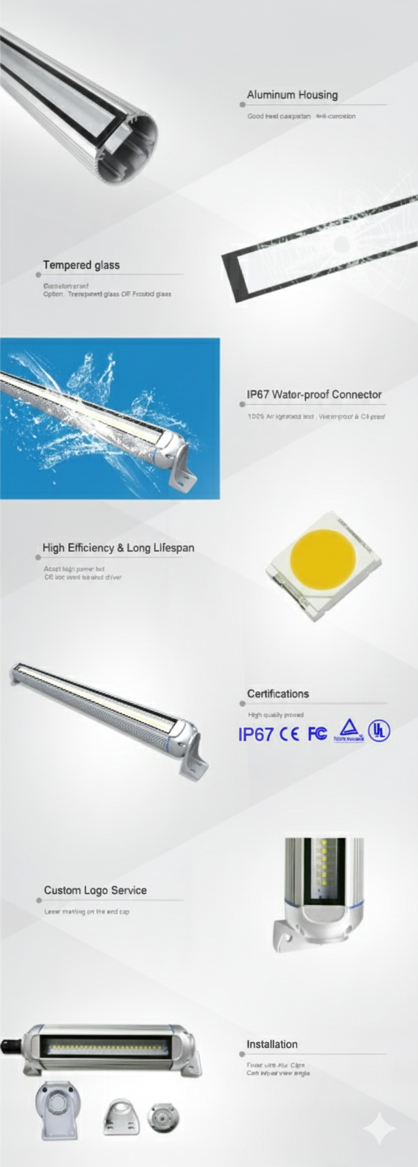 IP67 Machine Tube Light with rotable bracket machine lamp