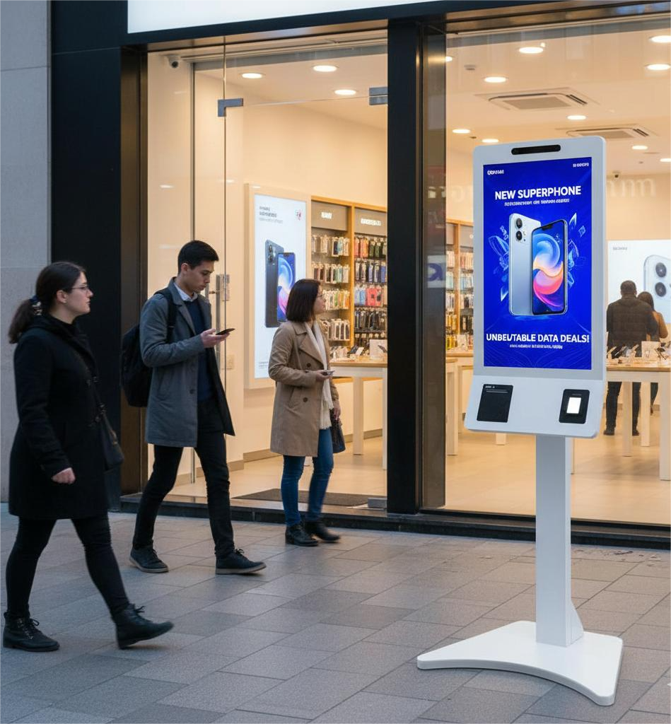 Self-Service Touch Kiosk a sleek, user-friendly touchscreen kiosk that streamlines service by allowing customers to order, check in, pay, or access information quickly and independently. Ideal for reducing wait times and improving operational efficiency across various industries.