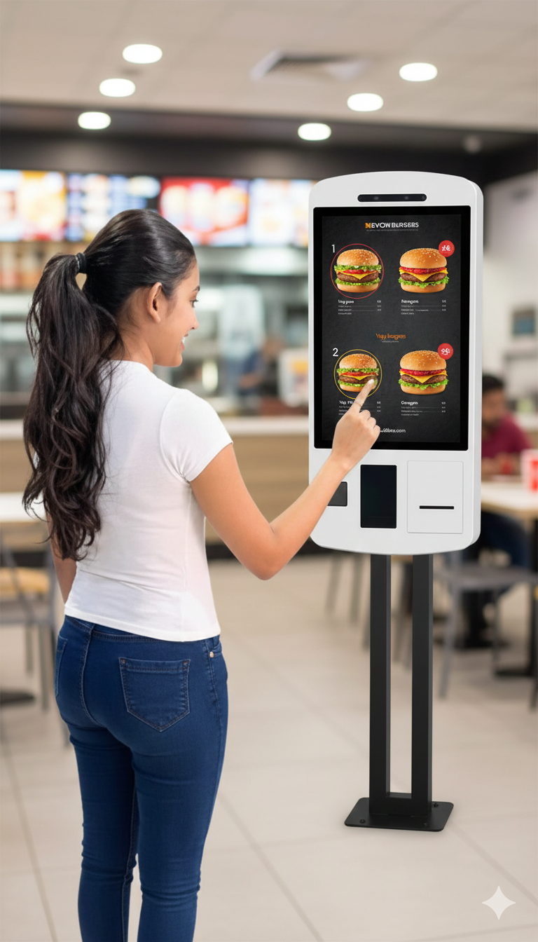 Self-Service Touch Kiosk a sleek, user-friendly touchscreen kiosk that streamlines service by allowing customers to order, check in, pay, or access information quickly and independently. Ideal for reducing wait times and improving operational efficiency across various industries.